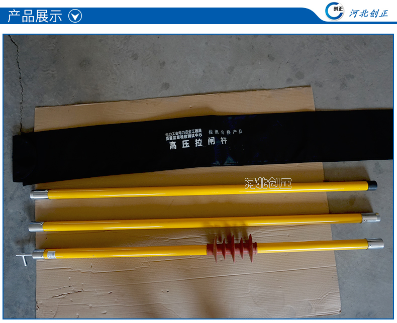 1、绝缘杆:采用绝缘性能及机械强度强、重量轻、经防潮处理的环氧树脂管制成。