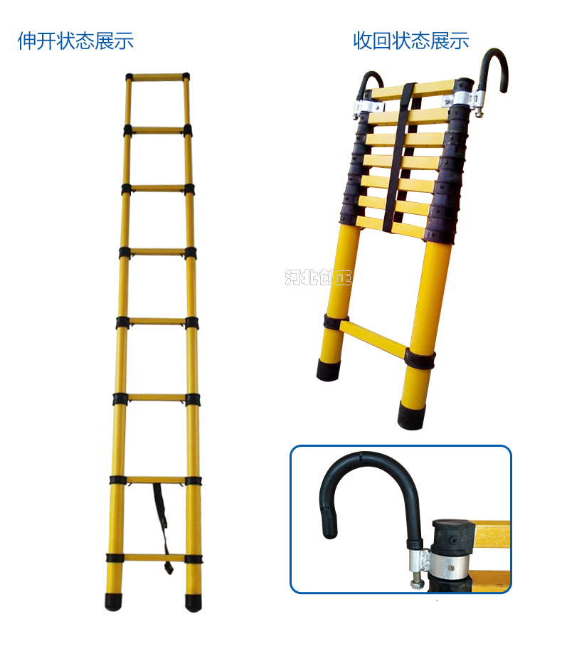 产品别名:绝缘伸缩单梯、鱼竿式绝缘梯、玻璃钢竹节梯,竹节式绝缘梯;