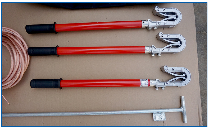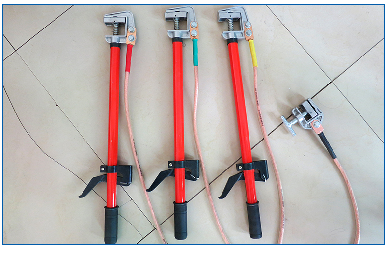 (3)制作工艺: 导线夹、接地夹采用铝合金或紫铜压铸成形;操作棒是玻璃钢环氧树脂管;接地软铜线采用多股软铜线绞合而成,外覆透明绝缘护层。