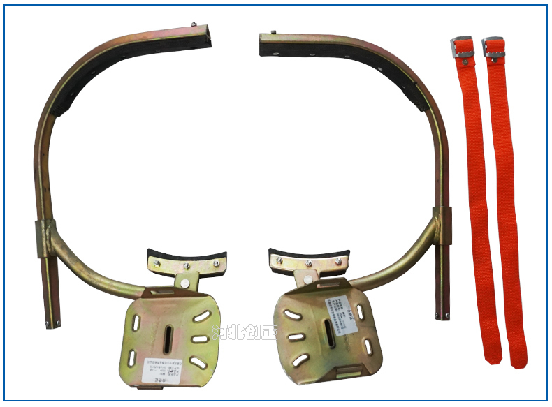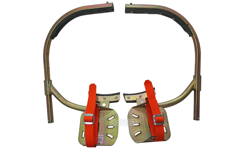 登杆脚扣是一种穿戴于脚部,供作业者从事水泥质电杆攀登作业的工具。