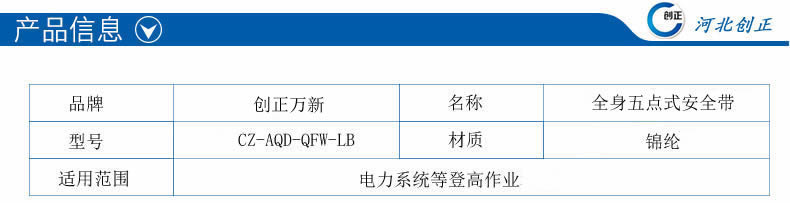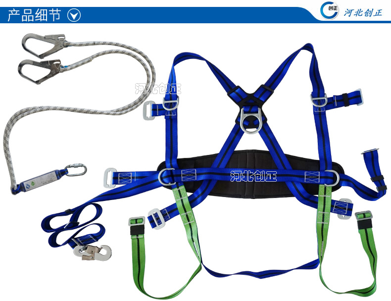 蓝色全身五点式大钩安全带的详细介绍: