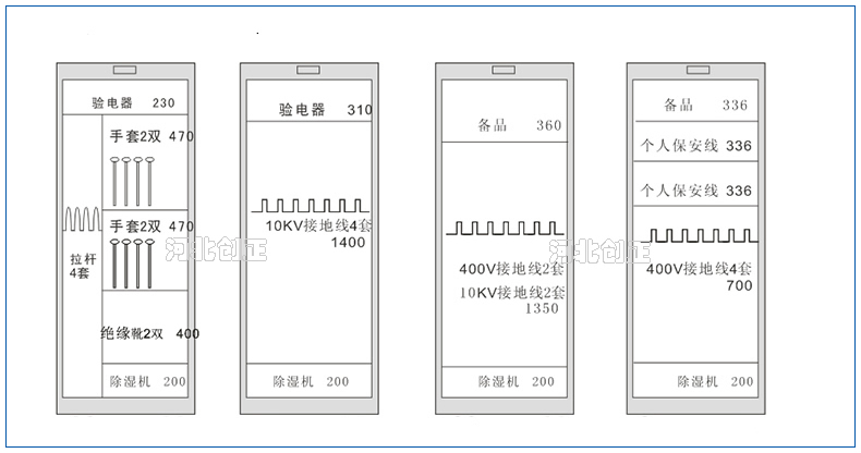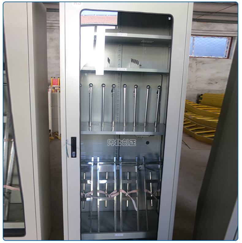 2、智能型安全工具柜装有温湿度显示表和控制操作面板,显示温湿度和设备运行状态。柜底可选择安装万向轮和定位螺杆;柜顶可选择安装吊杯,方便运输。应用于不同温湿度地区的不同电压等级的变电站、集控站、线路工区以及电力公司等单位。