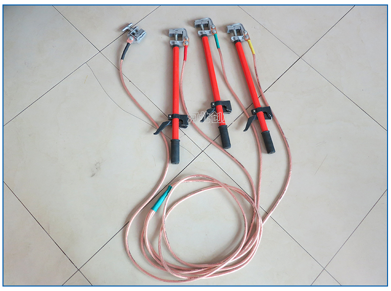 (2)、安装:将接地软铜线和接线端子固定在接地棒上的接电夹的相应位置上,将接地线尾线的接线端子固定在接地夹或地针上,构成一套完整的接地线。